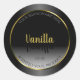 Make a lasting impression with this elegant and modern product label design featuring a black and white colour gradient with a luminous shimmery gold decor frame. Matching an outstanding font with shadow effect.