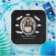 The design boasts an elegant oval-shaped display that showcases a photo along with a personalisation field for graduate's name and class year, as well as a graduation cap and diploma artwork in black and white. Customise the photo and text to suit your purpose and make it truly unique addition to your graduation party celebration!