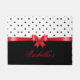 A Girly Black and white polka dots with black section where you can insert your name or monogram and decorated with a printed red bow border,