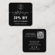 A minimalist custom business logo black and white QR code discount card for a professional business to use as a promotional tool to develop customer loyalty. Replace the image with a square photo of your logo. You can change the font, font colour, font size, letter spacing, background colour and reposition the text using the Design Tool. You can also change the social media icons so they are relevant to your business. The simple modern elegant design is yours to customise as you wish.