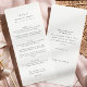 Elegant black and white Script Wedding Menu Double Sided with back message on the card