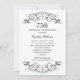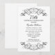 Ornate black scrollwork flourishes frame elegant calligraphy and customisable event details on a crisp white background for this classic milestone birthday invitation. A sophisticated choice for 50th, 60th, 70th, 75th, 80th, and 90th birthday celebrations, dinner parties, and formal events. All text including name, age, and party details is fully customisable.