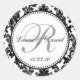 Elegant Black White Silver Damask Wedding Classic Round Sticker