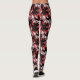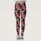 Elegant Black White Silver Flowers Burgundy Leggings