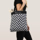 Elegant Black & White Stripes Pattern Name Tote Bag