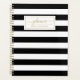 This planner features elegant black and white stripes pattern on both sides. Personalise with your name or text of your choice in gold colour.