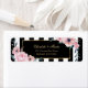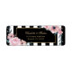 Elegant floral return address labels featuring pink flowers framing the return address against a black and white striped background. Matching items available.