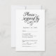 This RSVP design features a balanced blend of black calligraphy and clean serif type on a white background. The classic contrast and visual flow offer clarity, charm, and timeless appeal. Created to coordinate with a full wedding suite focused on elegant, minimalist typography.
