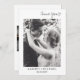 Front says" Thank You" in a simple modern typography and space for your names and wedding date, while the backside can be personalized with a photo and your own personal message in a simple black typography.