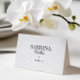 This elegant black and white wedding place card features refined serif and graceful script typography on a rich dark background, creating a timeless and sophisticated look. Designed for formal receptions and black-tie weddings, it perfectly complements a minimalist tablescape while maintaining a sense of luxury. Ideal for pairing with the full Sabrina wedding stationery suite, this design helps guide your guests to their seats with understated elegance. Fully customisable — edit names, table numbers, and layout to suit your event.