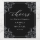 These elegant black and white wedding or rehearsal dinner wine bottle labels feature white printing on a black background. The word "Cheers" is in an elegant script and is surrounded by a classic vintage ornate frame corners design. It's perfect for a classy, sophisticated black wedding or rehearsal dinner. See all of the matching products in my collection below.