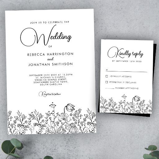Wildflower Elegant Black White Wedding SuiteDesigned by Amanda MacLeod