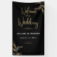 Add this Elegant Hanging Wedding Banner to your Reception Accessories. Designed with Gold and White text on a black background with gold coloured leaves and highlights. The text includes: Welcome to our Wedding, The Bride and Groom's Names and Wedding Date. To personalise, simply insert your details into our easy template, replacing the sample text. Be sure to view the entire Elegant Black and White, With Gold Wedding Collection for matching stationery and accessories.