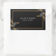 Elegant Black with Gold Wedding Sticker designed with white text on a black background and highlighted with black and gold coloured leaves and frame. The text includes: The Bride and Groom's First Names and Wedding Date. To personalise, simply insert your details into our easy template, replacing the sample text. Be sure to view the entire Elegant Black With Gold, Wedding Collection for matching stationery.