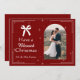 Share warm holiday blessings with this elegant flat Christmas card featuring a classic deep red background, a graceful arch photo frame, and delicate white accents. The sentiment “Have a Blessed Christmas” brings a faith-inspired touch, and the card can be fully personalized with your photo, names, and message. Perfect for couples, families, and newlyweds who want a timeless Christmas design. The back is blank for handwriting or additional text if desired.