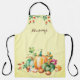 The perfect apron to keep you covered while preparing a Thanksgiving or Friendsgiving feast for family and/or friends. Elegant array of fall harvest pumpkin and flowers. Inspirational quote says "Blessings" which can be changed to a name or other favorite saying.,