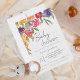 This invitation showcases a burst of nature's finest colours, featuring a delightful array of bright tulips and lush greenery. The vivid hues of pink, purple, yellow, and green create a visually captivating backdrop that will surely bring joy and excitement to your baby shower.