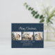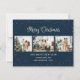 Elegant custom blue photo Merry Christmas cards featuring a photo collage and falling snow on a blue background. Easily personalise this blue photo Christmas card with your favourite images, a family name and text.