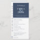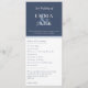 Elevate your ceremony with this refined wedding program card, featuring your names in crisp white atop a bold slate blue background, accented by a signature ampersand for a touch of modern flair. The program’s order of events is elegantly typeset below in a modern classic serif font, presented on a clean white background for effortless readability. The seamless blend of bold blue and minimalist white creates a cohesive, sophisticated design that complements both formal and contemporary wedding aesthetics. Perfect for couples seeking a stylish, timeless way to guide guests through their special day.