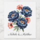 Elegant Blue and Burnt Orange Floral Wedding Wine Label