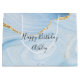 A large gift bag with a beautiful icy blue agate design with faux gold glitter accents.