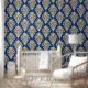 A beautiful classic Victorian inspired damask pattern with a modern twist in faux gold and dark blue.