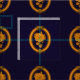 A sophisticated, elegant design featuring a pattern of gold decorative oval frames with golden roses inside, scattered over a royal blue background.