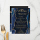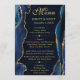 A striking design featuring deep navy blue agate textures accented with shimmering gold glitter for a glamorous, modern finish. Elegant flowing script pairs with bold serif typography to create a refined, high‑end aesthetic. The rich blue tones evoke sophistication and timeless elegance, while metallic gold accents add warmth and sparkle. Perfect for weddings with gemstone or geode themes, this chic menu card brings a polished, editorial look to your table setting—ideal for romantic celebrations and stylish evening receptions.