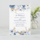 Elegant Blue and Gold Floral Wedding Invitation