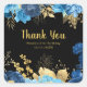 Elegant Blue and Gold Flowers Birthday Party Square Sticker