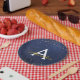 Elegant Blue and Gold Foil Confetti Monogram Paper Plate