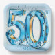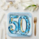 Elegant Blue and Gold Gemstone 50th Birthday Paper Plate