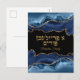 Elegant Blue and Gold Hebrew A Freilichen Purim Holiday Postcard