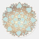 This was an order I placed quite a long time ago. I liked the pattern on the computer, but in reality, the circles seemed a bit blah to me. The color didn't resonate as unusual, or flashy, but yes, it fits the circle, and is intricate and well designed. In reality I guess I would have liked a different couple of color contrasts rather than aqua and tan. Tan is a dirty color in my mind - purely personal reflection. I often seem to answer two of your questions in one. The design is great. It fits the circle. Its glossy which is all that gives it life, as I don't care for the tan color with the aqua. I need a sharper image of contrast to make this sticker come alive for me. I will use it up, eventually, but it isn't one I yearn to use.