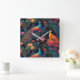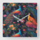 Elegant Blue and Gold Peacock in Colourful Garden Square Wall Clock