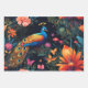 Elegant Blue and Gold Peacock in Colourful Garden Wrapping Paper Sheet