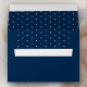 Elegant envelope featuring a beautiful blue and gold dots pattern on the inside and navy blue colour on the outside.