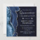 Elegant Blue and Silver Glitter Agate Quinceanera Invitation