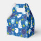 Elegant 💙blue and white🤍 Christmas🎄 pickleball Favour Box .Blue and white pickleball paddles, white Christmas trees with pickleball Christmas tree baubles, snowflakes on trendy dark blue background.