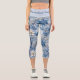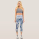 Elegant Blue and White Floral Pattern Design Capri Leggings