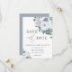 Share the news of your wedding plans with this beautifully elegant watercolor save the date card. The design features blue and white floral roses and coordinating blooms with trailing greenery. A lovely type face pairing conveys your details in style. This trendy colour combination is a popular choice with contemporary appeal. Personalise the easy-to-use text template with your details.