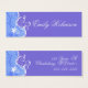 Elegant skinny profile card design with blue and white flowers and scrolls on a blue background. Customisation is easy.