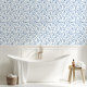 Elegant Blue and White Toile Floral Pattern Wallpaper
