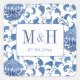 This classic design features a simple and elegant couples monogram with blue and white Chinoiserie print background. This background pattern was originally painted in watercolors by me, before being scanned into digital form. The pattern was inspired by the kind you can find on antique ginger jars.