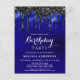 Elegant Blue Black Glitter Drips Birthday Party Postcard