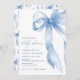 Invite your guests to a beautiful celebration with an elegant "Dusty Blue Bow" boy baby shower invitation. Featuring a soft dusty blue colour palette and a delicate bow design, this invitation exudes sophistication and charm. The graceful typography adds a refined touch, making it perfect for a timeless and chic baby shower. Whether it's an intimate gathering or a larger celebration, this invitation beautifully sets the tone for a memorable event filled with excitement and joy as you prepare to welcome your little boy into the world.
