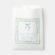 Elegant party favor bags for your bridal shower featuring grandmillenial-inspired vintage green scallop and blue floral watercolor frames, a delicate blue coquette bow watercolor, "a sweet thank you" showcased in an elegant blue calligraphy script, and the name of the bride and shower date in classic serif typography.