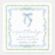 Elegant bridal shower thank you stickers for your party favors featuring grandmillenial-inspired vintage green scallop and blue floral watercolor frames, a delicate blue coquette bow watercolor, "a sweet thank you" showcased in an elegant blue calligraphy script, and the name of the bride and shower date in classic serif typography.