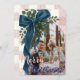 Elegant Blue Bow Christmas Two Photo Holiday Card