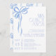 Elegant Blue Bow Mis Quince Años QR Quinceañera Invitation